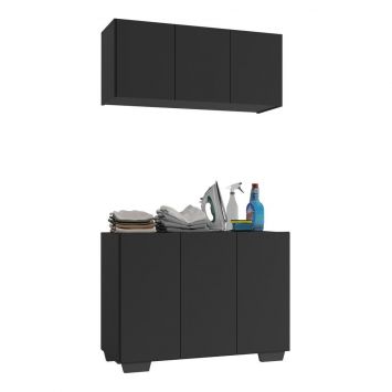 Conjunto Lavanderia Multiuso Armário Aéreo e Balcão 3 Portas Multimóveis MP5051 Preto