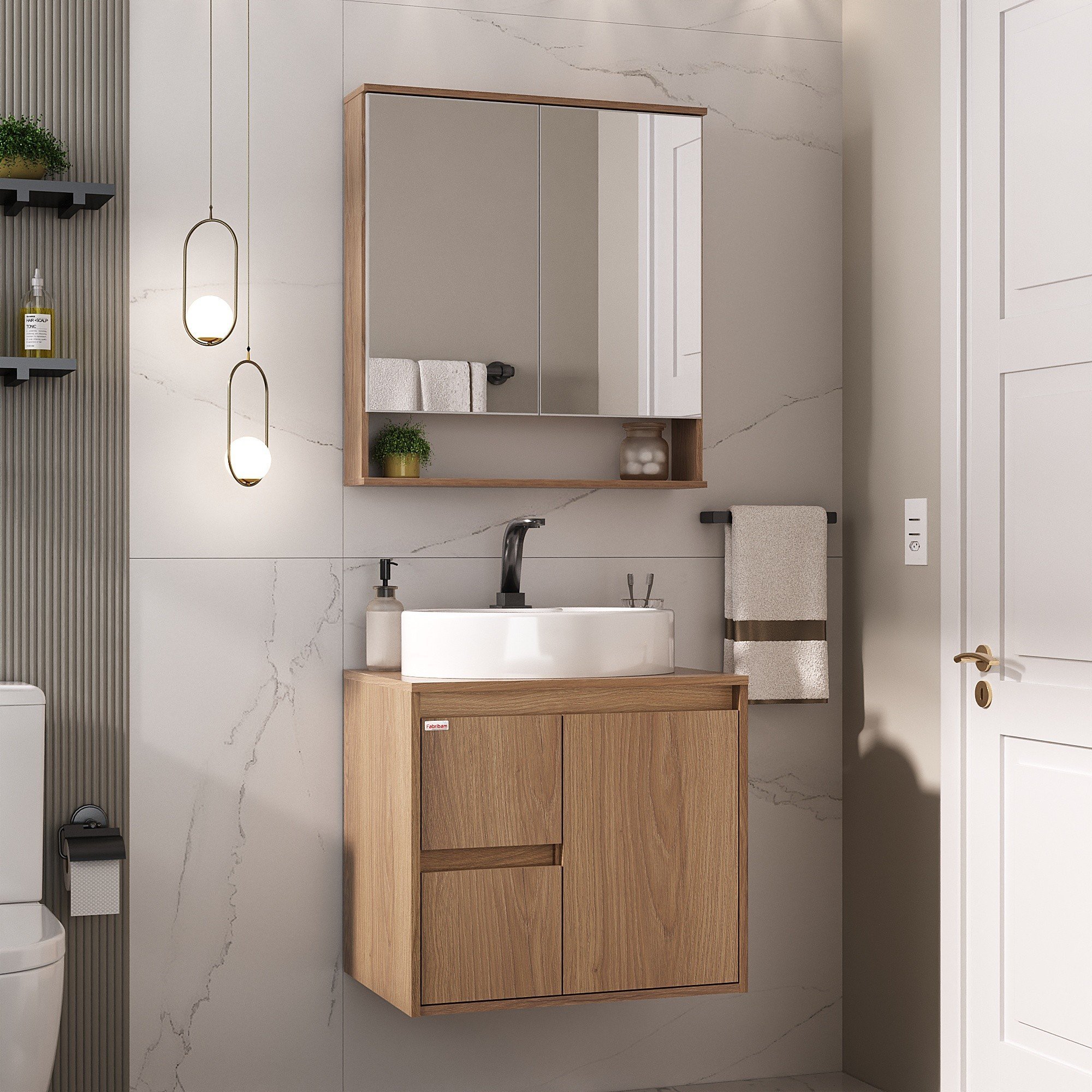 Conjunto Gabinete para Banheiro com Cuba Sobrepor e Espelheira Toro 60 Cm