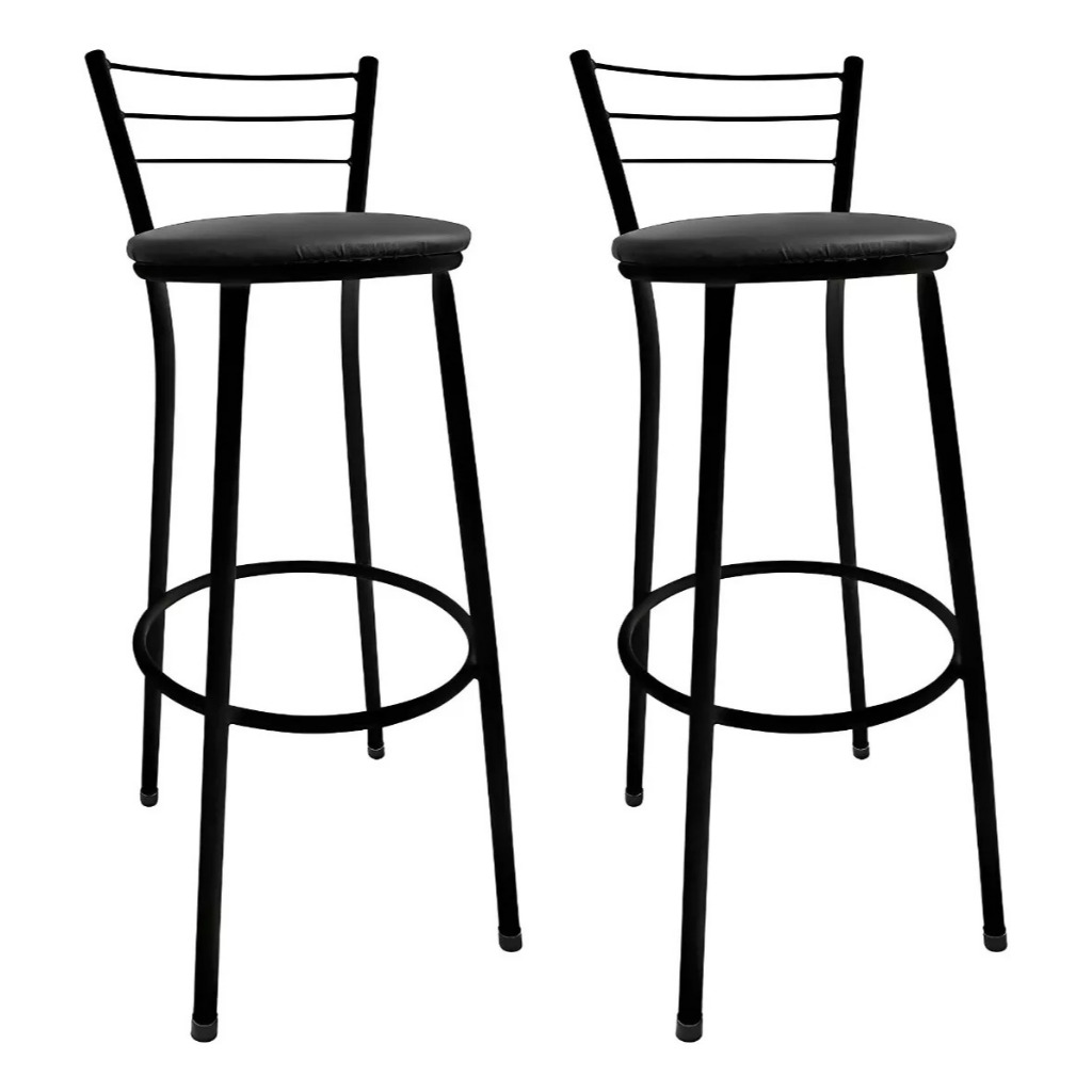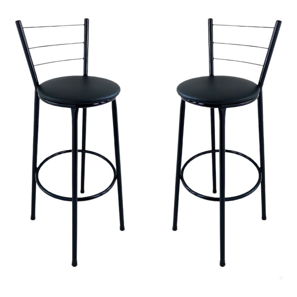 Kit 2 Banquetas Baixa Banco Cozinha Americana Balcão Bar Aço:preto/preto