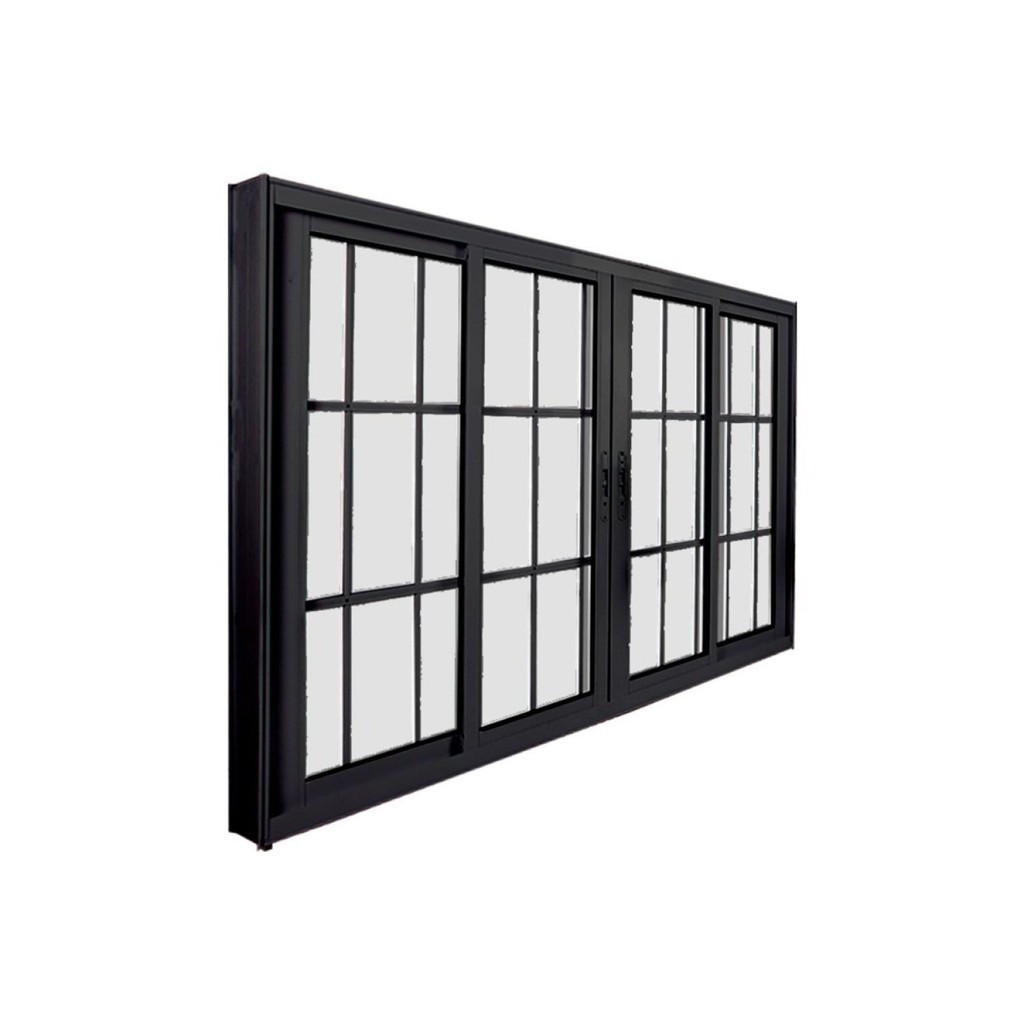 Janela de Correr Abertura Central Premium 4 Folhas com Grade Vidro Liso 100x150cm CRV Portas e Janelas Preto