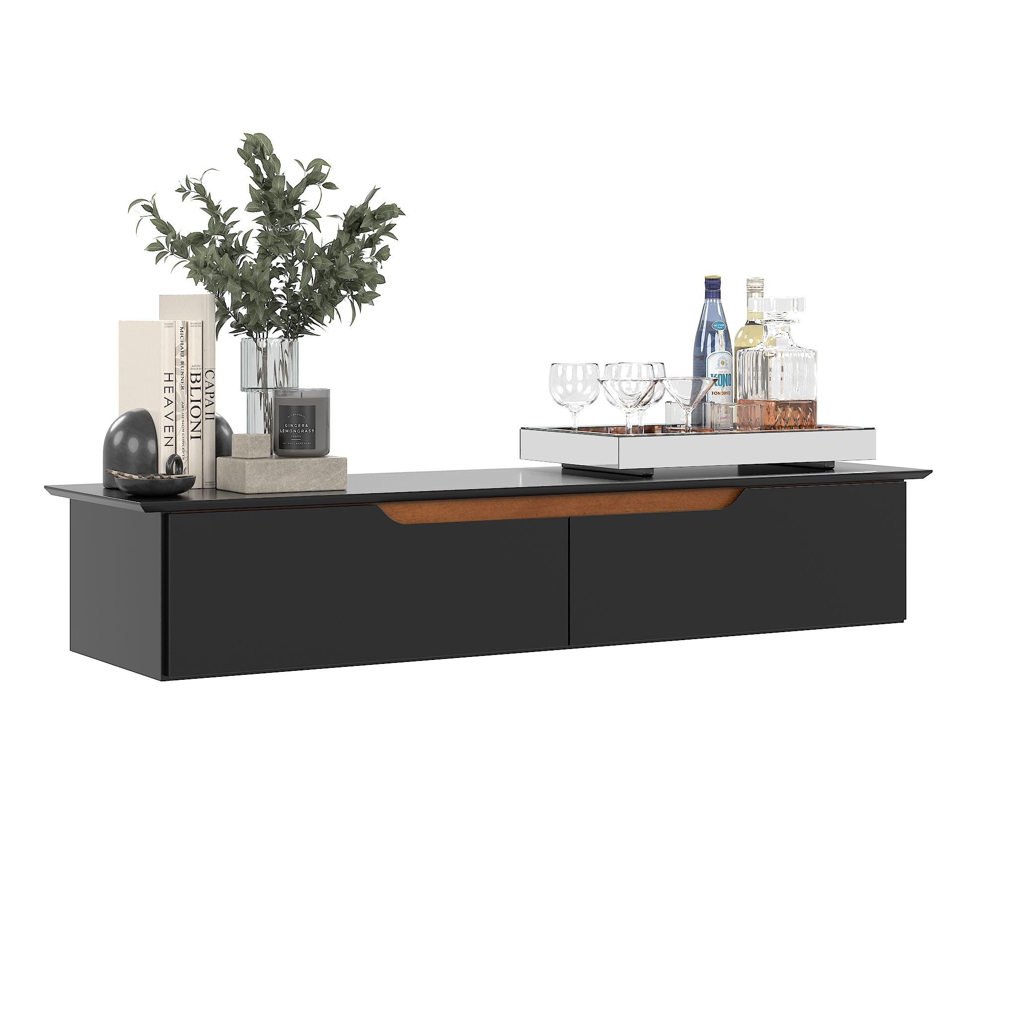 Rack Suspenso Pequeno Painel Parede Sala Tv Estante Quarto:preto/freijó
