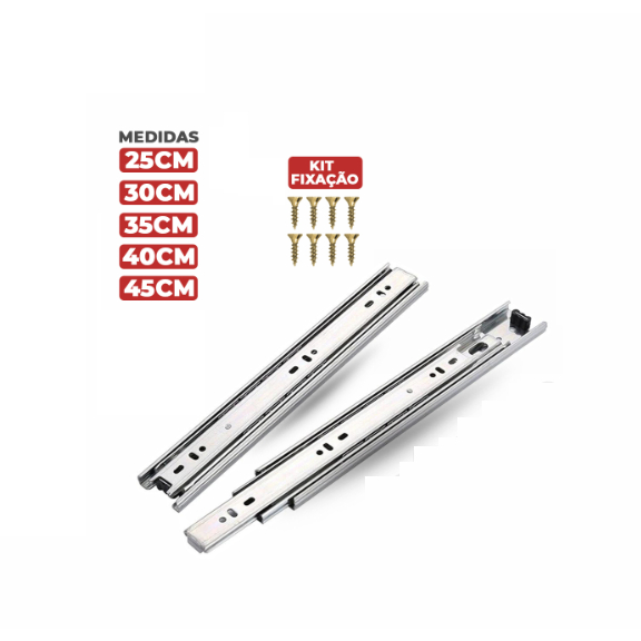 Corrediça Trilho Telescópica Light Com Parafusos (Escolha seu tamanho) para Gavetas C/2UN (PAR) 25cm | 30cm | 35cm | 40cm | 45cm
