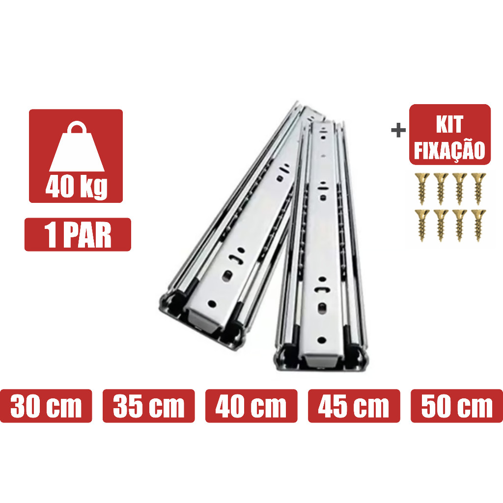 Corrediça Telescópica Para Gaveta 40cm 400mm 35kgs O PAR