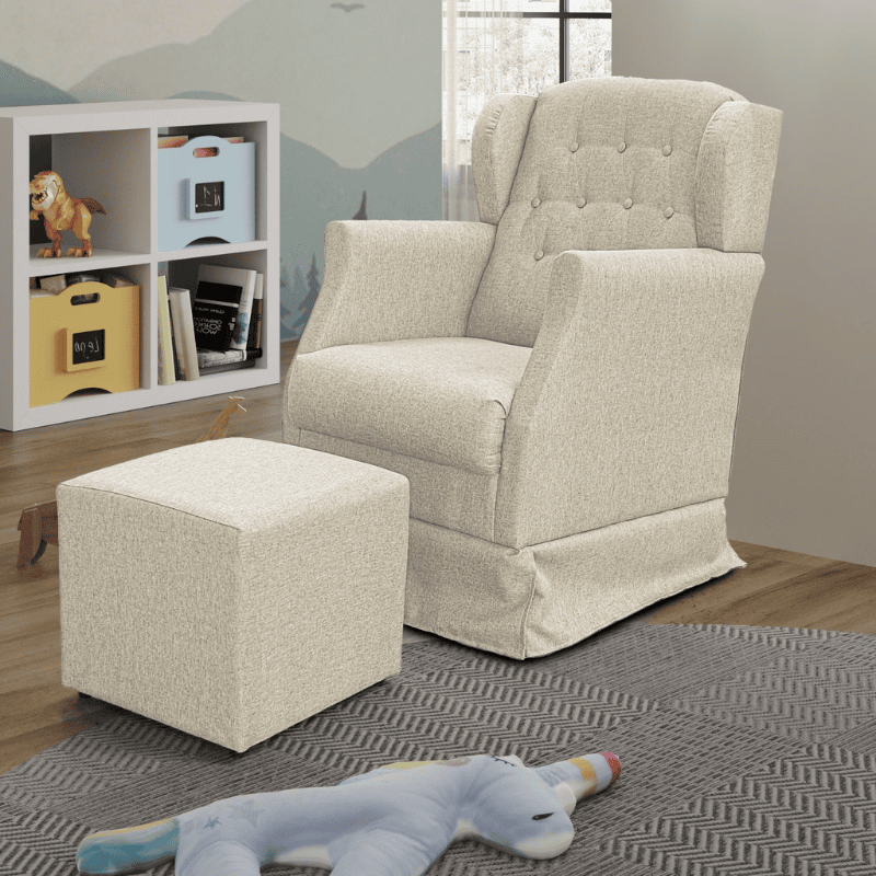 Poltrona Amamentação Balanço Manu com Puff Suede Bege Twdecora
