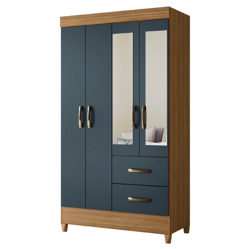 Guarda Roupas Casal Capela Com Espelho 4 Portas 2 Gavetas Mobi Nature / Grafite Albatroz