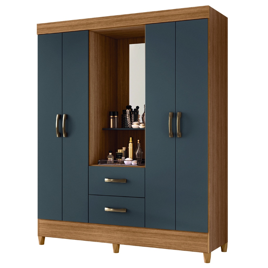 Guarda Roupas Casal Capela com Espelho 4 Portas 2 Gavetas Mobi Nature / Grafite Albatroz