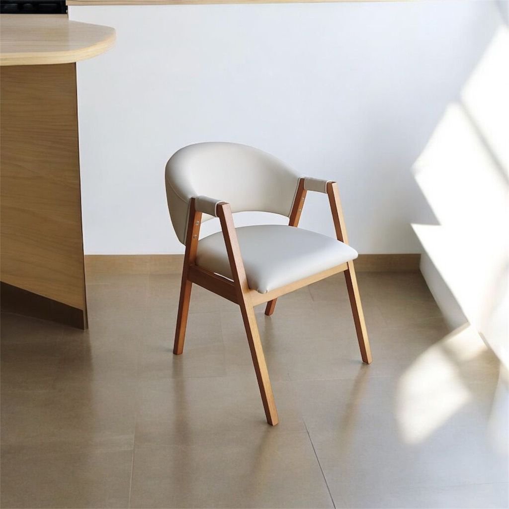 Cadeira De Poltrona Minsk Estofada Em Madeira Maciça De Eucalipto Canela Linho Cru