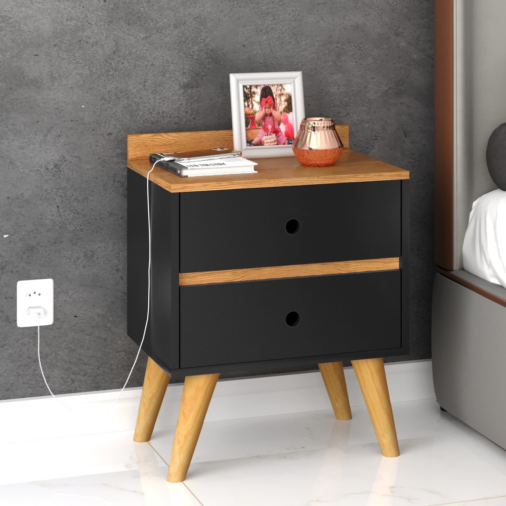 Mesa de Cabeceira Retrô com 2 Gavetas 1 Nicho e Pés Palito Decor - ViaNossa:Preto
