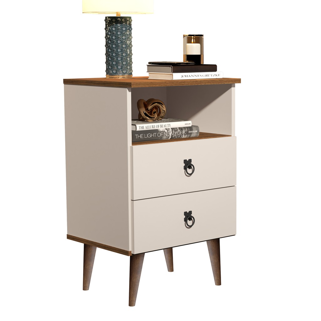 Mesa de Cabeceira Estilo Retrô Pés Palito 2 Gavetas Lotus - Off White - Comprar Moveis em Casa