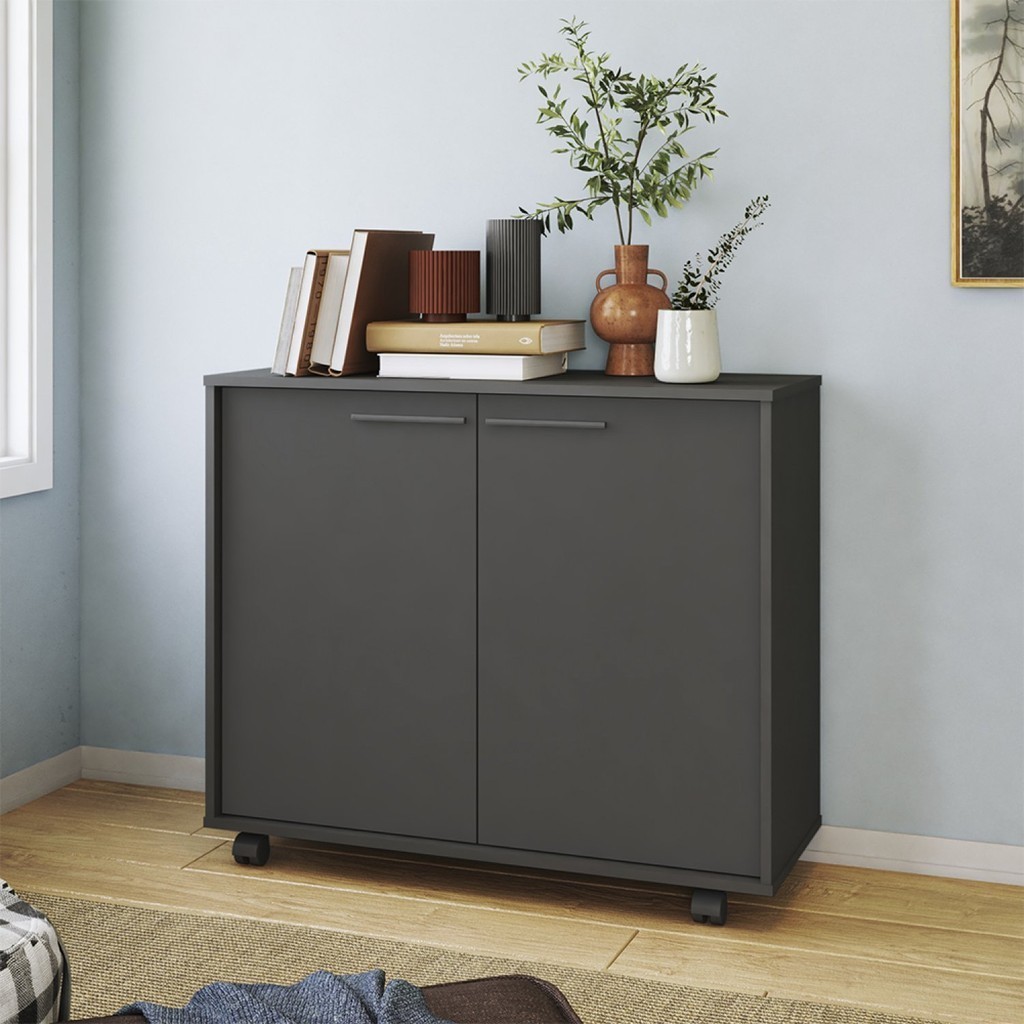 Armário para Escritório Baixo 2 Portas 2 Prateleiras com Rodízios MDP 12mm