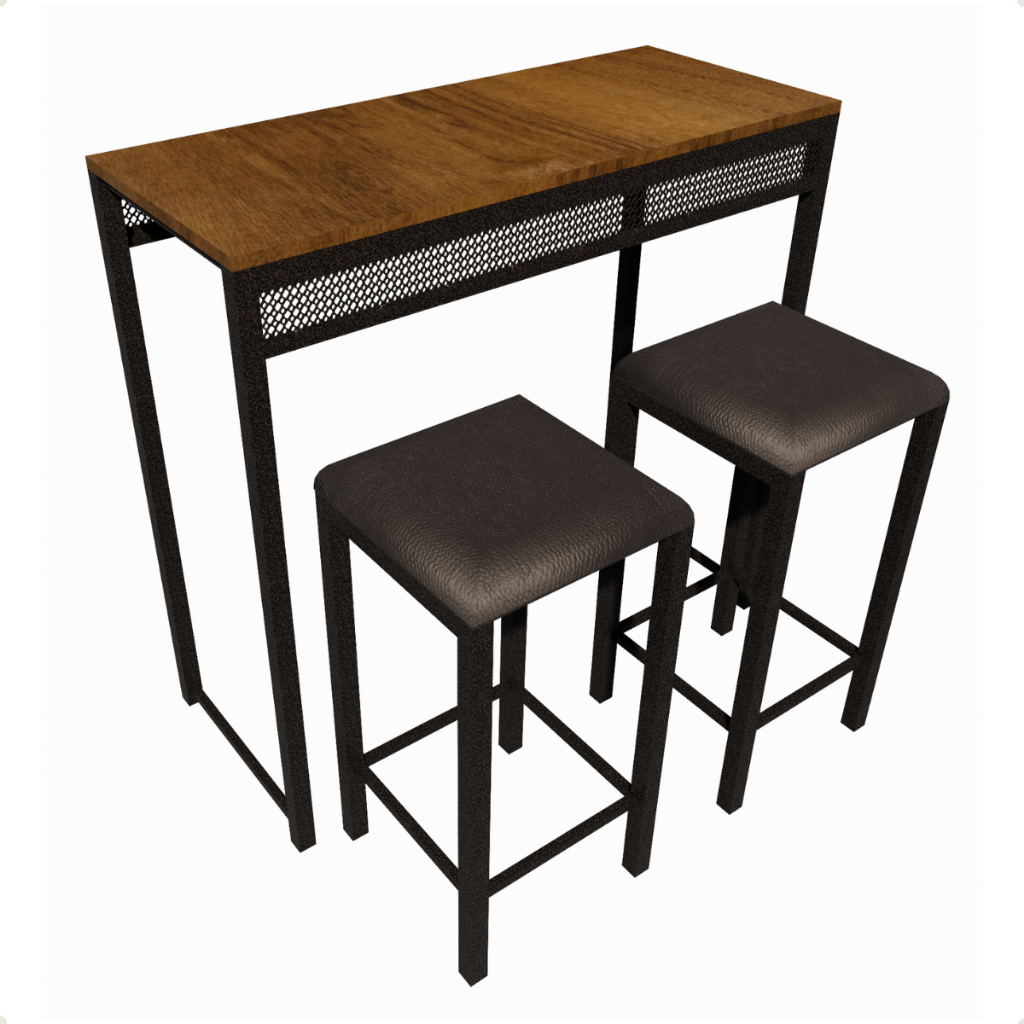 Conjunto Mesa Bistrô Alta e 4 Banquetas com Encosto Estilo Industrial Aura D09 Peroba - Mpozenato