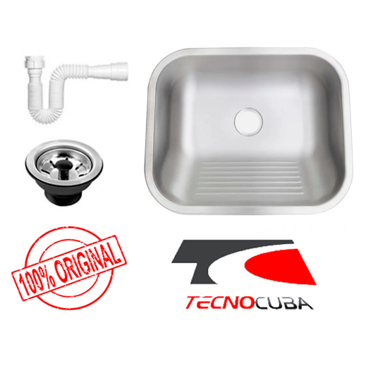 Tanque inox 50x40x22cm (AÇO 304) Acetinado com válvula+ sifão -Tecnocuba