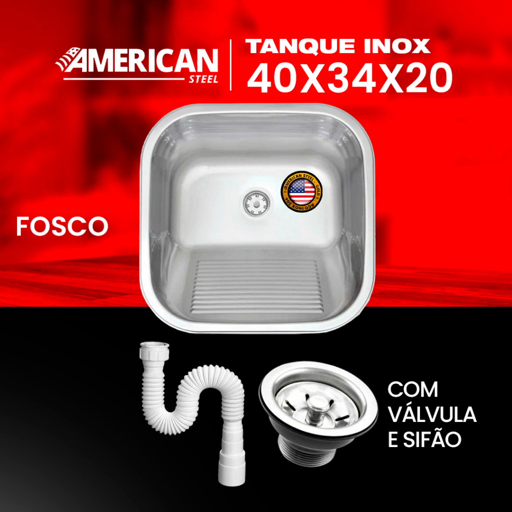 Tanque Inox Monobloco Fosco 40x34 Cm com Sifão American