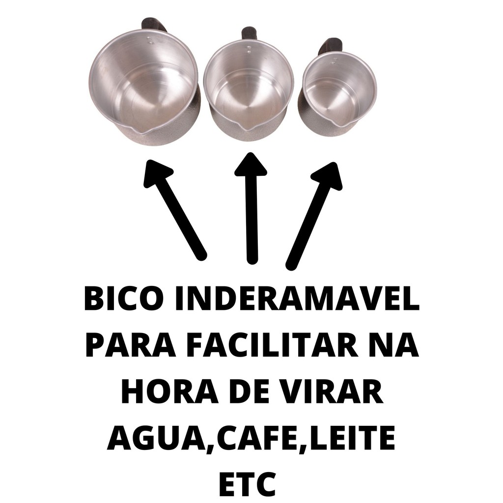 Caneco Alumínio 3 Peças Com Bico Inderanavel Preto Craqueado