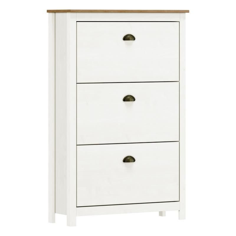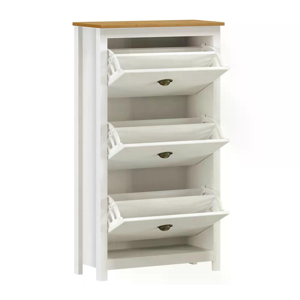 Sapateira Basculante Madeira 3 Gavetas Basil Mel Branco