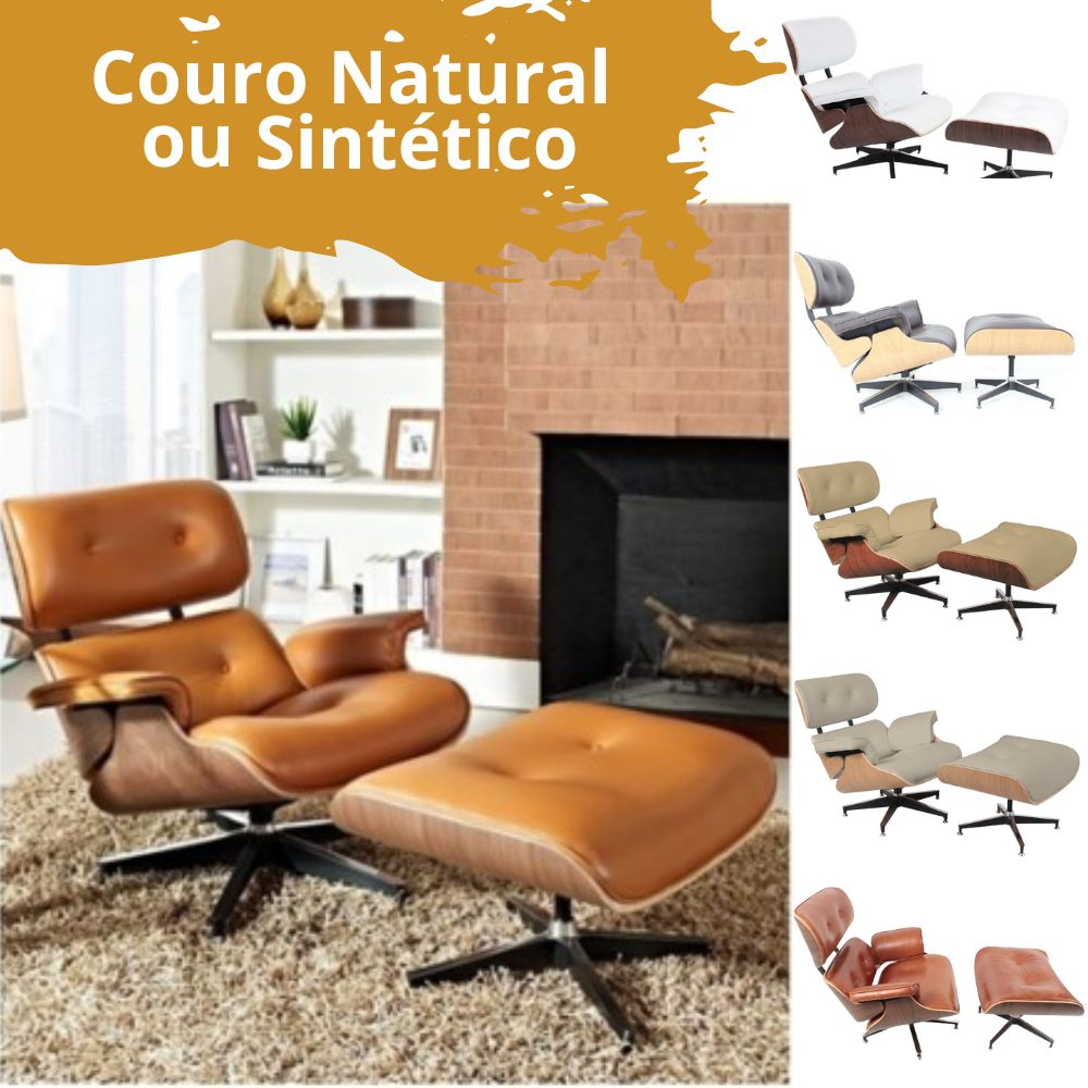 Poltrona e Puff Charles Eames Premium Couro Conforto decoração premium