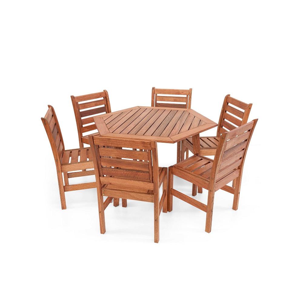 Conjunto Mesa De Jantar Em Madeira Sextavada Com 6 Cadeiras Magazine Decor