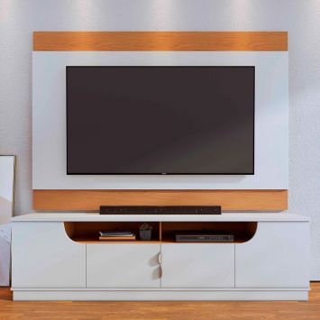 Rack com Painel para TV até 75 Polegadas Santorini 4 Portas Off White e Freijó
