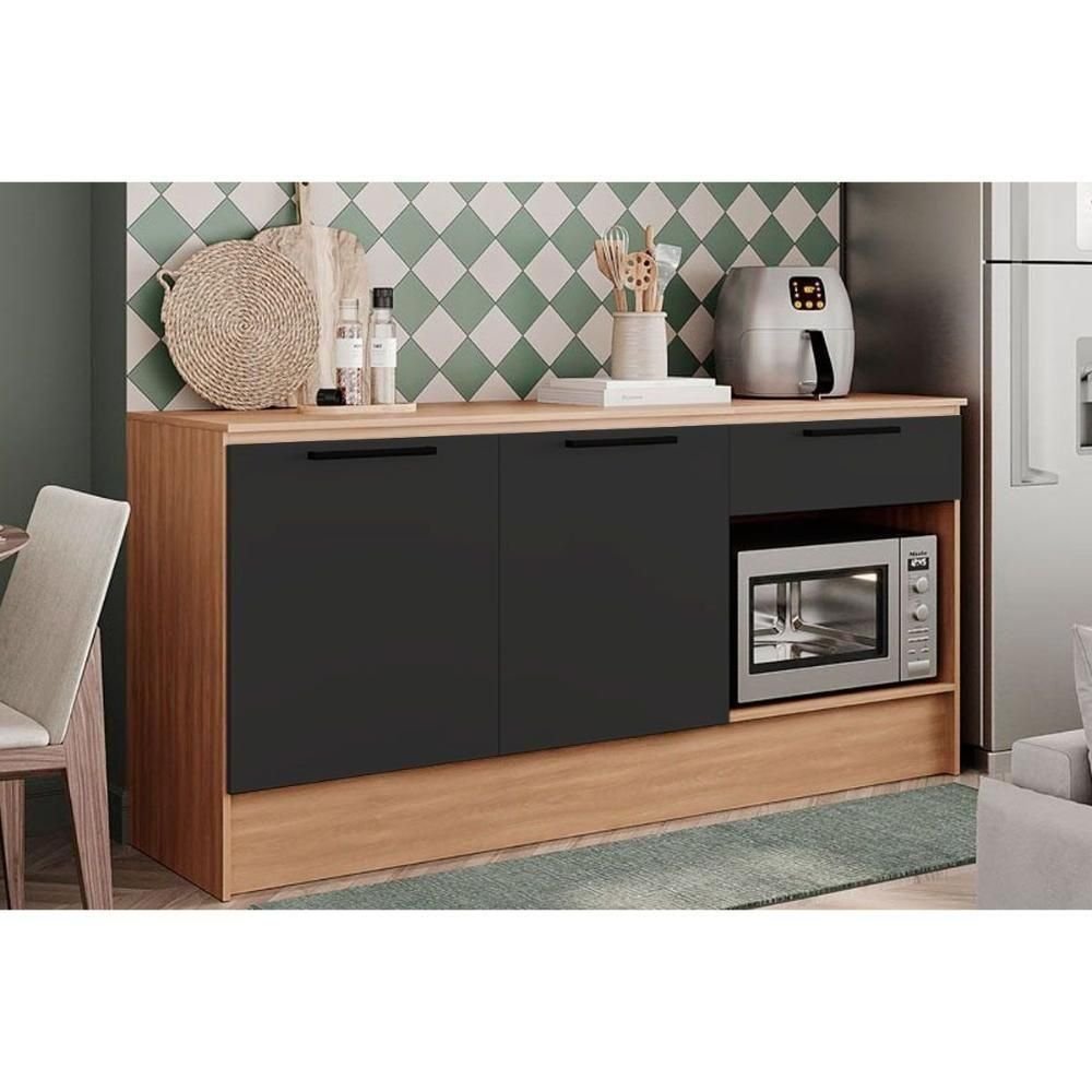 Balcão de Cozinha para Cooktop 5 bocas Forno e Micro-ondas Zanzini Master com 2 portas 1 gaveta Natura Preto