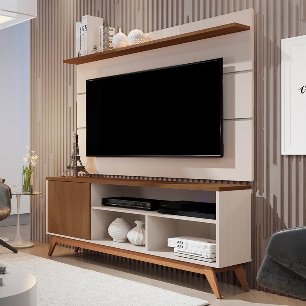 Rack com Painel para TV Até 50 Polegadas Malbec 1 Porta 1 Prateleira Off White/Freijó - Giga Móveis