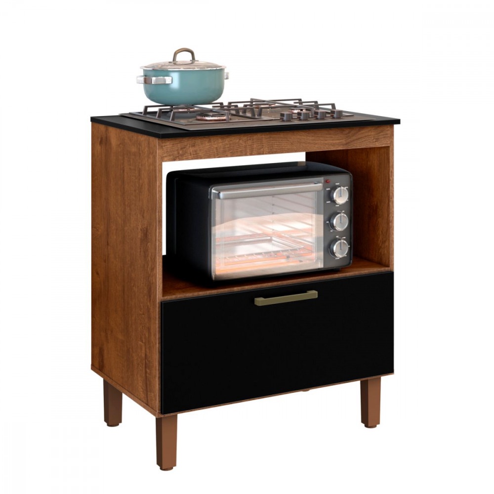 Balcão para Cooktop 4 Bocas com Porta Basculante Master Zanzini Marrom/Preto