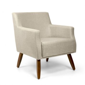 Poltrona Amamentação Aquila com Puff Pé Palito Linho Bege