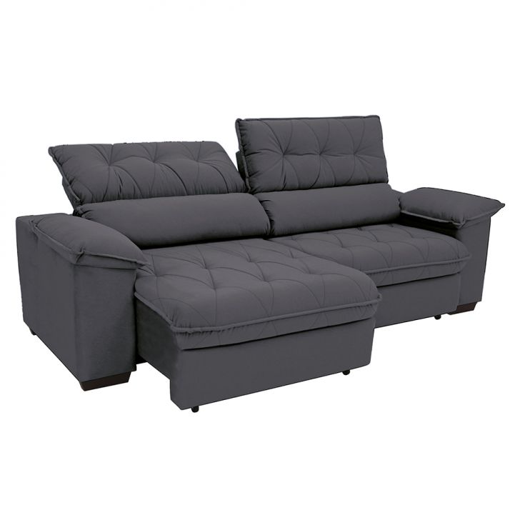 Sofá 3 Lugares Retrátil e Reclinável Piemont Suede Cinza 230 cm