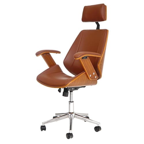 Cadeira de Escritório Office Lisboa PU Marrom Base Giratória Cromada