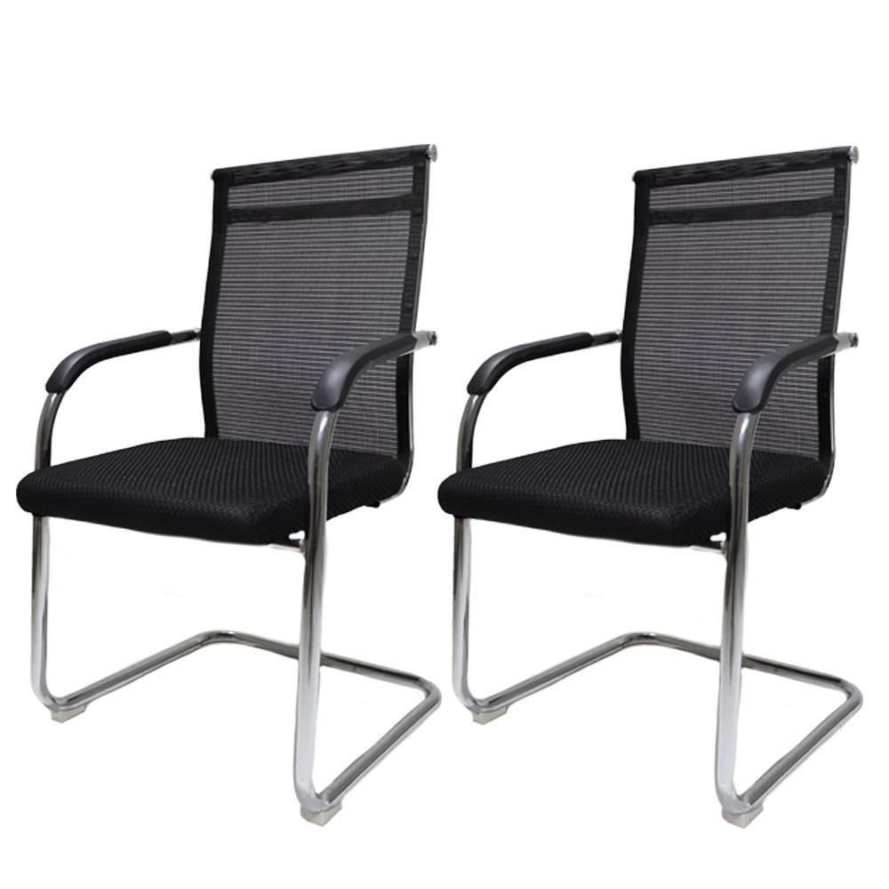 Kit 2 Cadeiras Escritório Basic Diretor Fixa Tela Mesh Preta Base Cromada - Preto