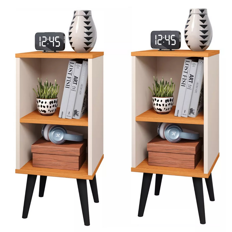 Kit 2 Mesas de Cabeceira Retrô com Prateleira Nicho para Quarto