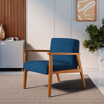 Poltrona Living Pés e Base em Madeira Linho Cotton Azul Marinho