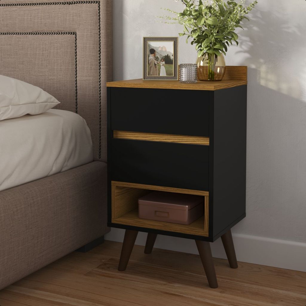 Mesa De Cabeceira Moderna Mesinha Canto Quarto Apoio Cama 2 Gavetas E Nicho Decorativo Quarto Retrô - Dream Rpm