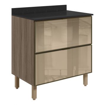 Balcao Com Tampo 2 Gavetoes Vidro 80 cm MDF Kali 16412 Carvalho Toq Nicioli