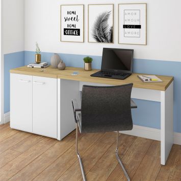 Conjunto de Escrivaninha com Armário de Escritório Toq 2 PT Branco e Olmo 75 cm