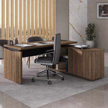 Mesa de Escritório em L Connect II 1 PT Nogal e Preta