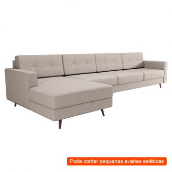 [OUTLET] Sofá 4 Lugares Living com Chaise Esquerdo Pé Palito Linho Cotton Cru