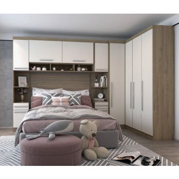Guarda Roupa Dormitório Modulado Master Casal Queen 1,58 m Canto c/ Mesa Escrivaninha e Nicho - Luci