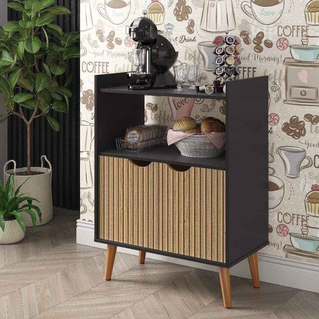 Aparador Buffet Natalia Cantinho do Café Preto Ripado com 2 Porta e Pés Palito