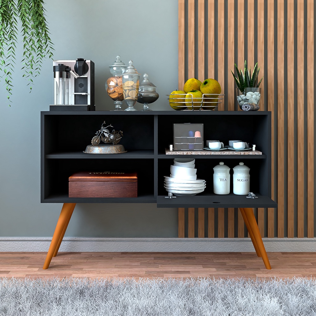 Aparador Buffet Moderno com 2 Portas Cantinho do Café Decoração Sala Estar Jantar Pés Estilo Retrô Preto/ Nature - Lojas RPM