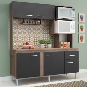 Cozinha Compacta Mali 5 Portas 1 Gaveta Teka e Grafite