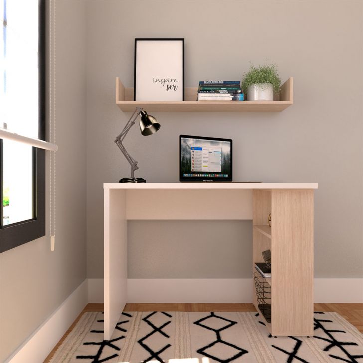 Escrivaninha com Prateleira KitCubos Branca e Geneve 90 cm