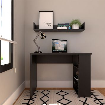 Escrivaninha com Prateleira KitCubos Preta 100 cm