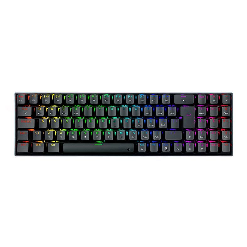 TECLADO MECANICO GAMER WIRELESS REDRAGON ZED PRO RGB PRETO SWITCH MARROM