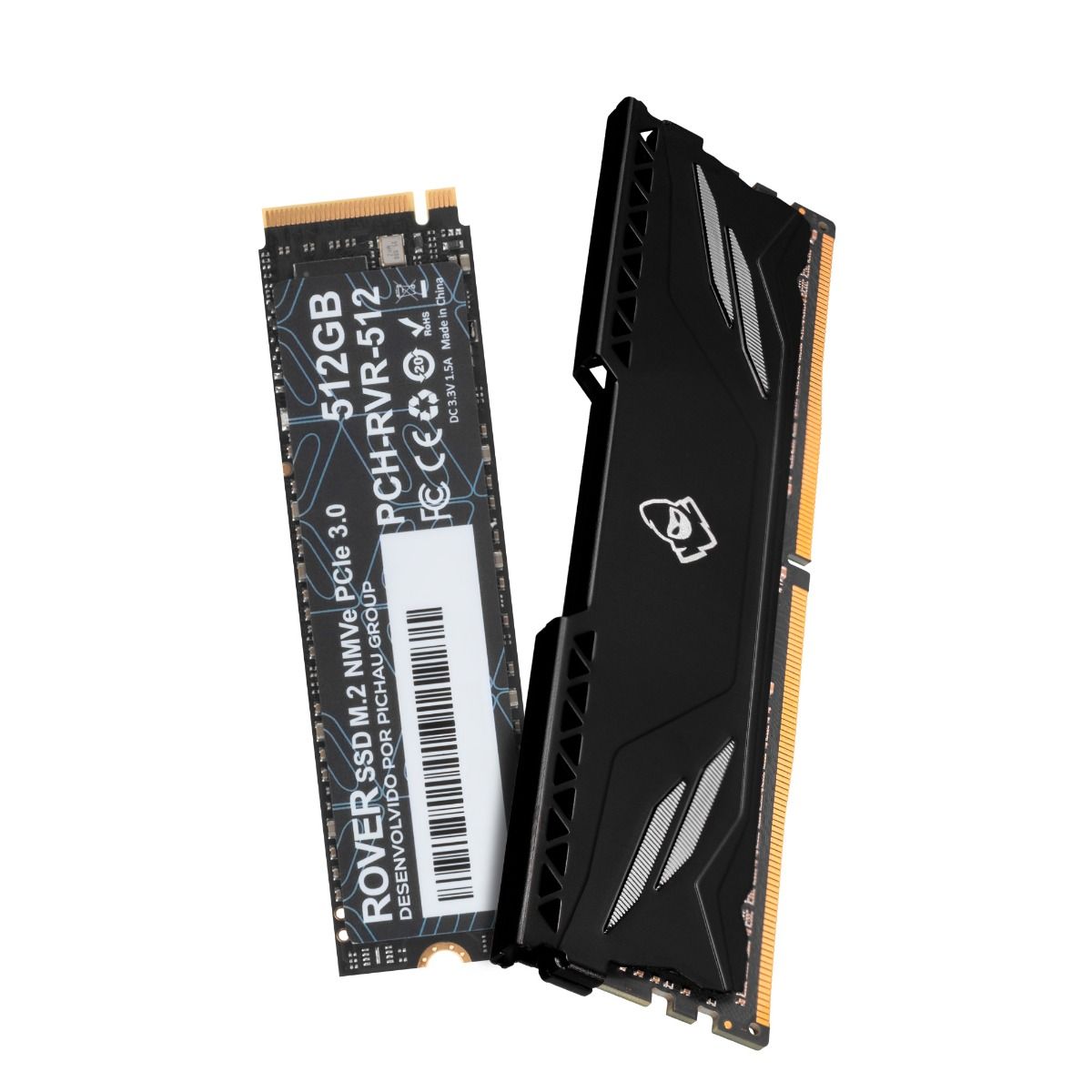 Kit SSD Pichau Rover, 512GB, M.2 2280, PCIe NVMe, Leitura 2100 MB/s, Gravacao 1400 MB/s, Memoria Mancer Dantalion Z, 8GB (1x8GB), DDR4, 3200MHz, C16