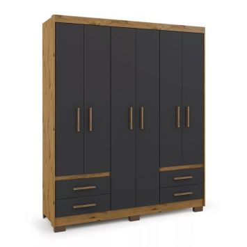 Guarda Roupa Roupeiro De Casal Preto com Marrom 6 Portas 4 Gavetas Armário Multiuso Quarto Pry 1,56x1,85 - Batrol