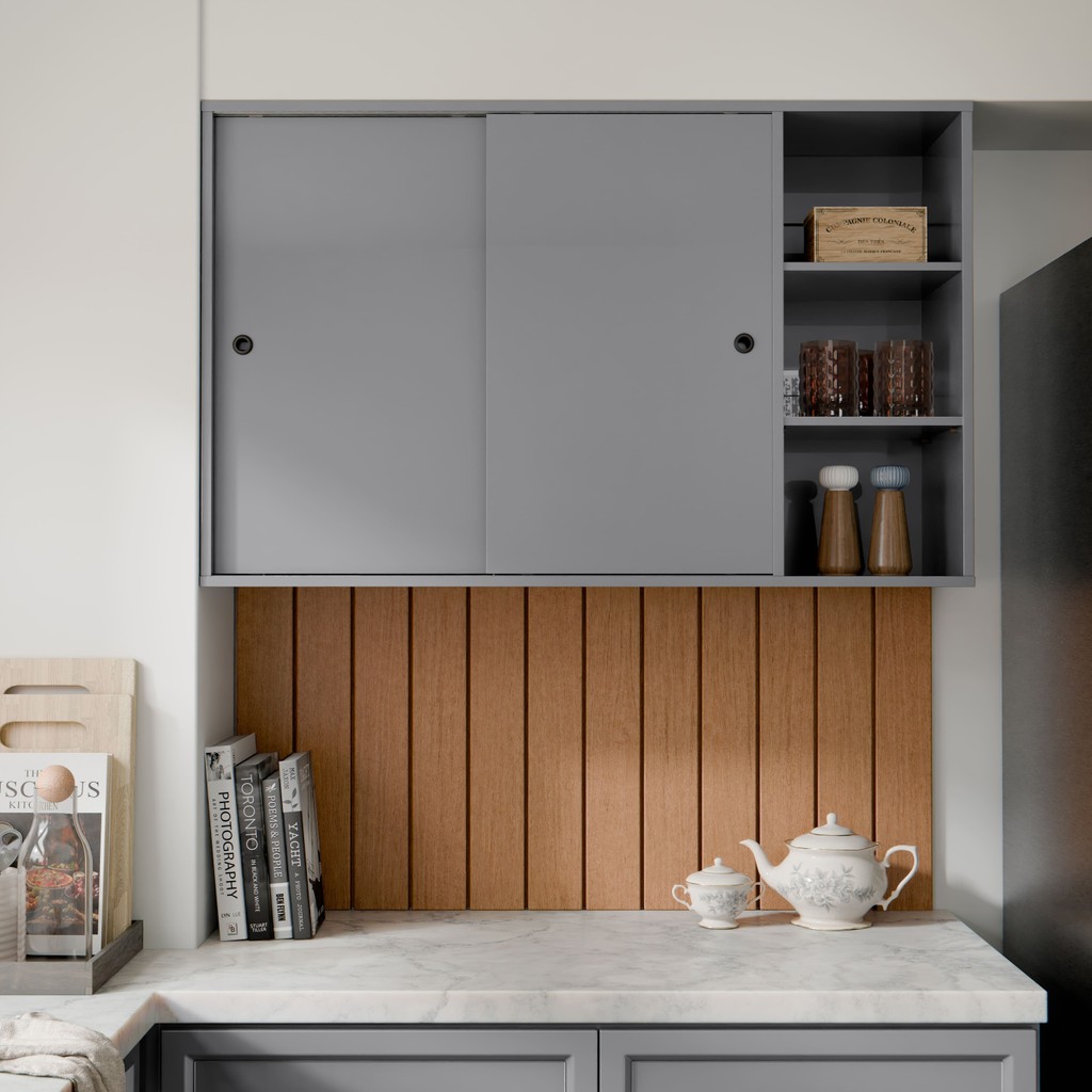 Armário Suspenso Aéreo de Parede Multiuso Cozinha Lavanderia Quarto Milano 2 Portas Correr - Cinza