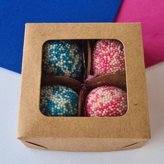 Kit 50 caixas 4 doces 7,5 x 7,5 x 3 cm com visor embalagem para presente, lembrancinhas e docinhos.