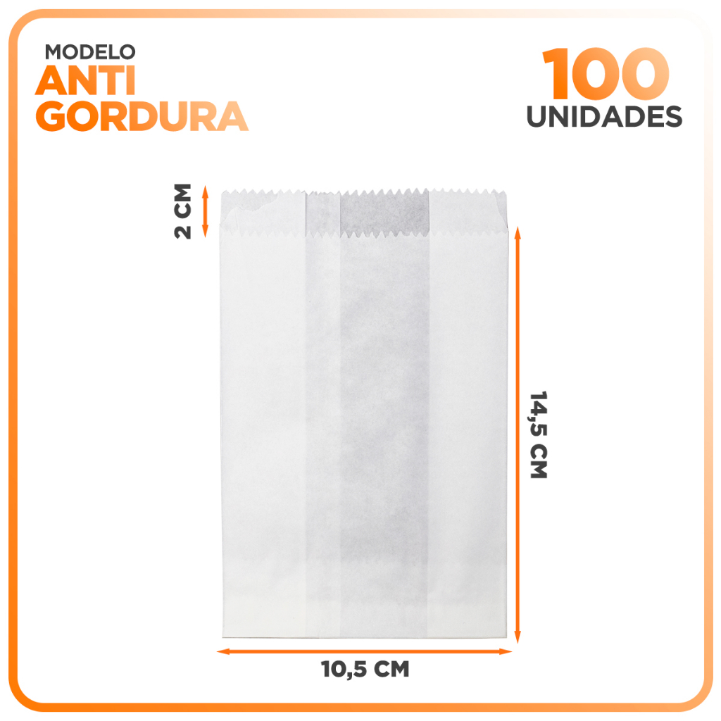 100 Sacos Kraft Barreira Anti Gordura Branco 14,5 x 10,5 x 5,5 cm - Embalagem Saquinhos Delivery - Batata Frita Pipoca Cookie Pastel Doces Salgados