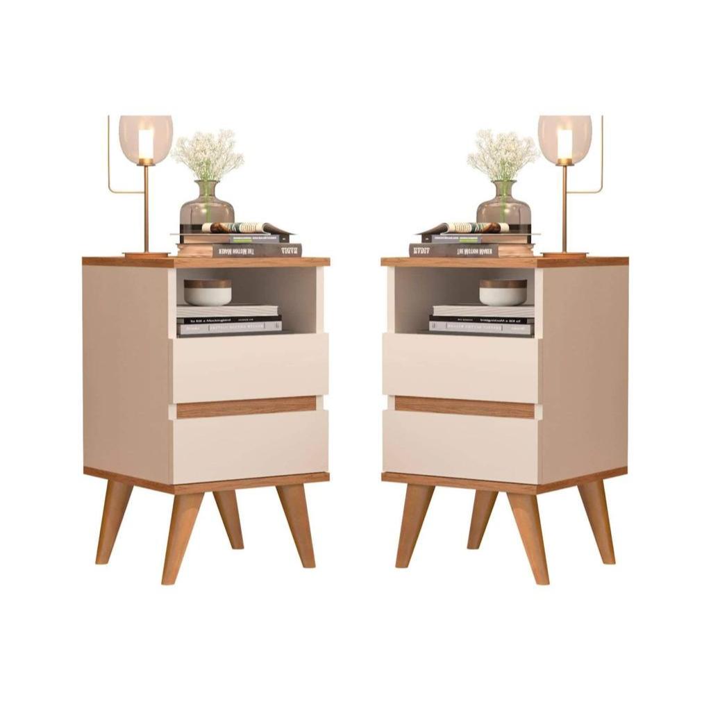 Conjunto Mesa De Cabeceira Kit Mesinha Canto Quarto Lateral Cama 2 Gavetas Organizadoras Retrô Quarto - Dream Rpm