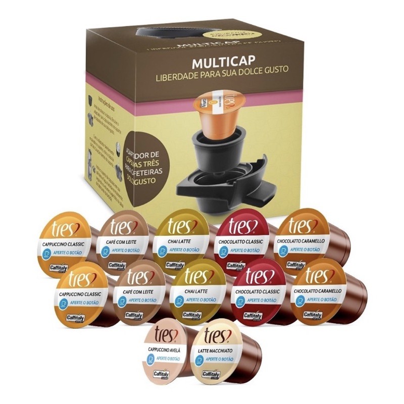 MULTICAP Adaptador p/ cafeteiras DOLCE GUSTO usar cápsulas Três Corações + 12 Cápsulas